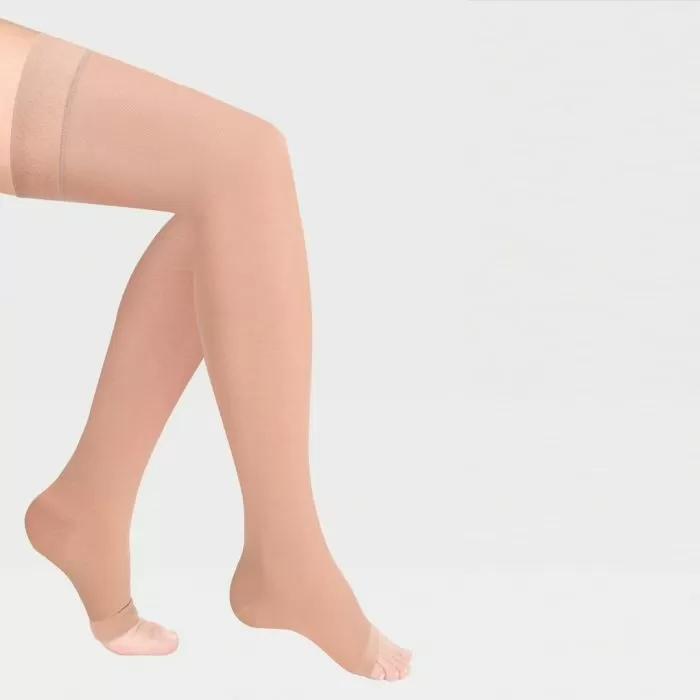 - резинка на силиконовой основе, в том числе на широкое бедро, мягко фиксирует чулок , не нарушая кровотока