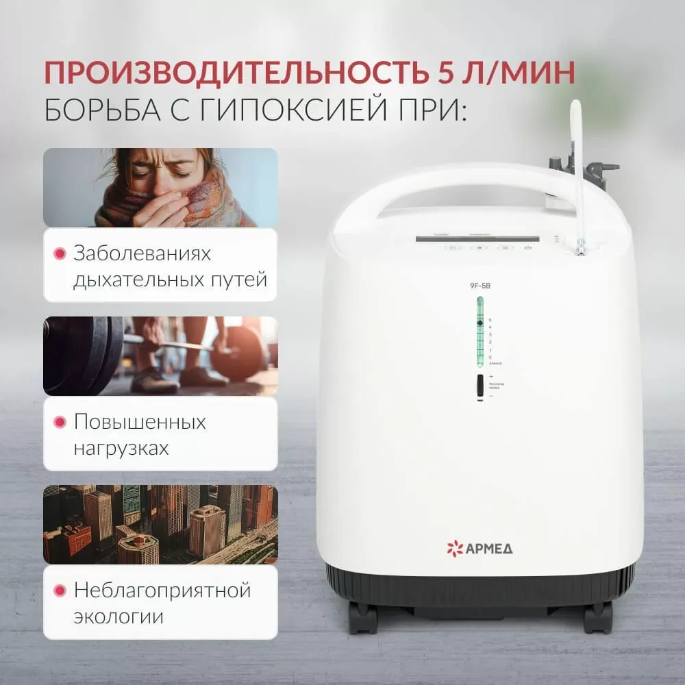 - Безопасность. Концентратор кислорода максимально безопасен для пользователей. В конструкции нет кислородных баллонов, а функция оповещения своевременно сигнализирует о таких неполадках, как падение давления, неисправность компрессора, низкая концентрация кислорода и проч. Такая система позволяет пользователю быстро понять, в чём заключается проблема, и решить её самостоятельно. Функция аварийного отключения предохраняет прибор от скачков напряжения и перегрузок.