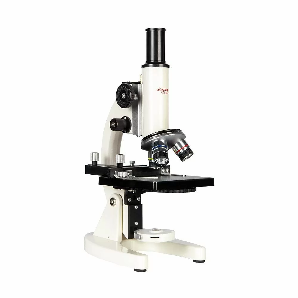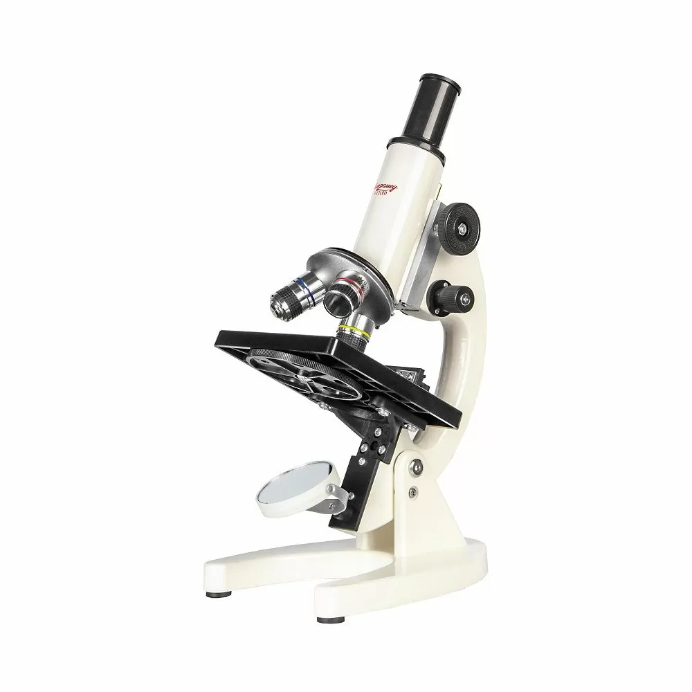 - Микроскоп предназначен для наблюдений в проходящем свете по методу светлого поля. Для освещения исследуемого препарата используется поворотное зеркало со светодиодной подсветкой от встроенного аккумулятора. Микроскоп оборудован предметным столиком с механическим держателем для точного перемещения препарата во взаимно – перпендикулярных направлениях. С помощью микроскопа можно изучать срезы тканей, мазки, прозрачные минералы, кристаллы и многое другое.
