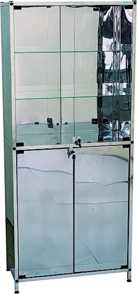 - Имеет два отделения, каждое из которых оборудовано двумя стеклянными полками, двумя дверками (стекло или нержавеющая ), укомплектовано замком.